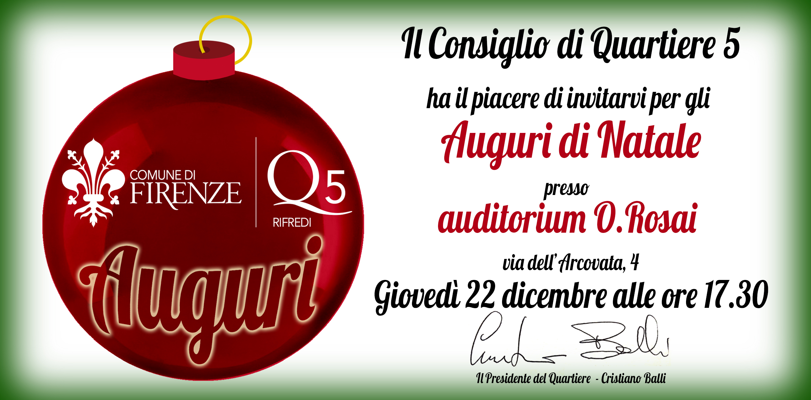 Giovedì 22 dicembre alle ore 17:30 all’auditorium Ottone Rosai in via dell’Arcovata 4