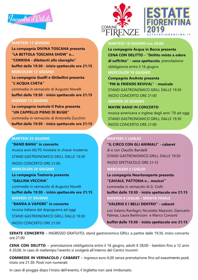 Dall'11 giugno al 4 luglio commedie in vernacolo fiorentino, cena con delitto, serate concerto e tanto altro