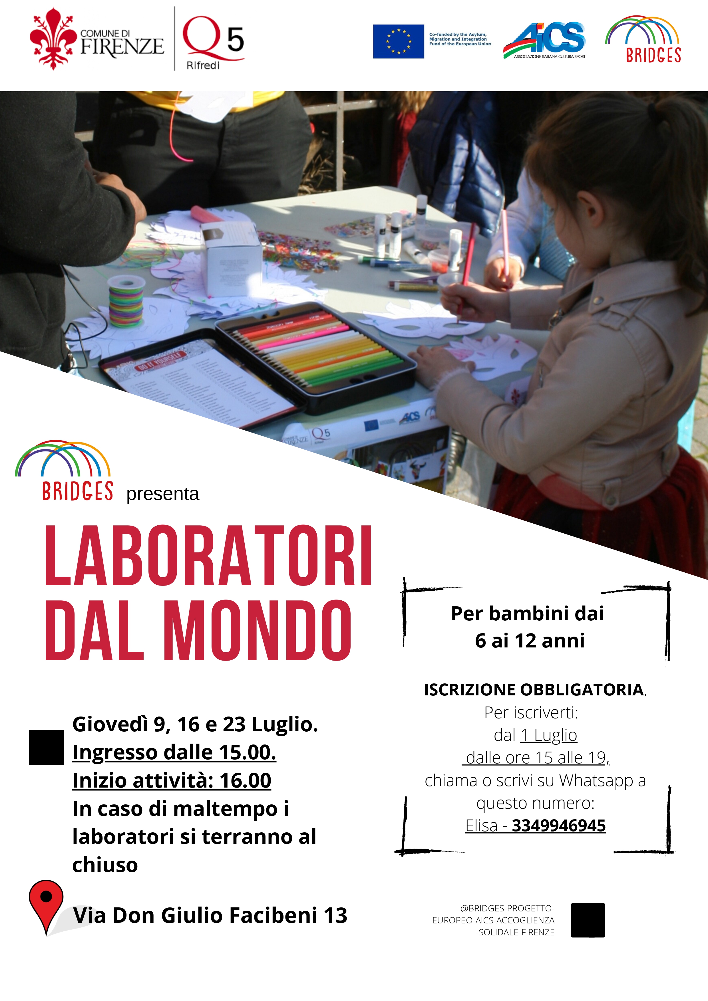 Giovedì 9, 16 e 23 luglio alla Polisportiva Rifredi: laboratori gratuiti per bambini tra i 6 e i 12 anni a cura del Progetto Bridges, in collaborazione con il Quartiere 5