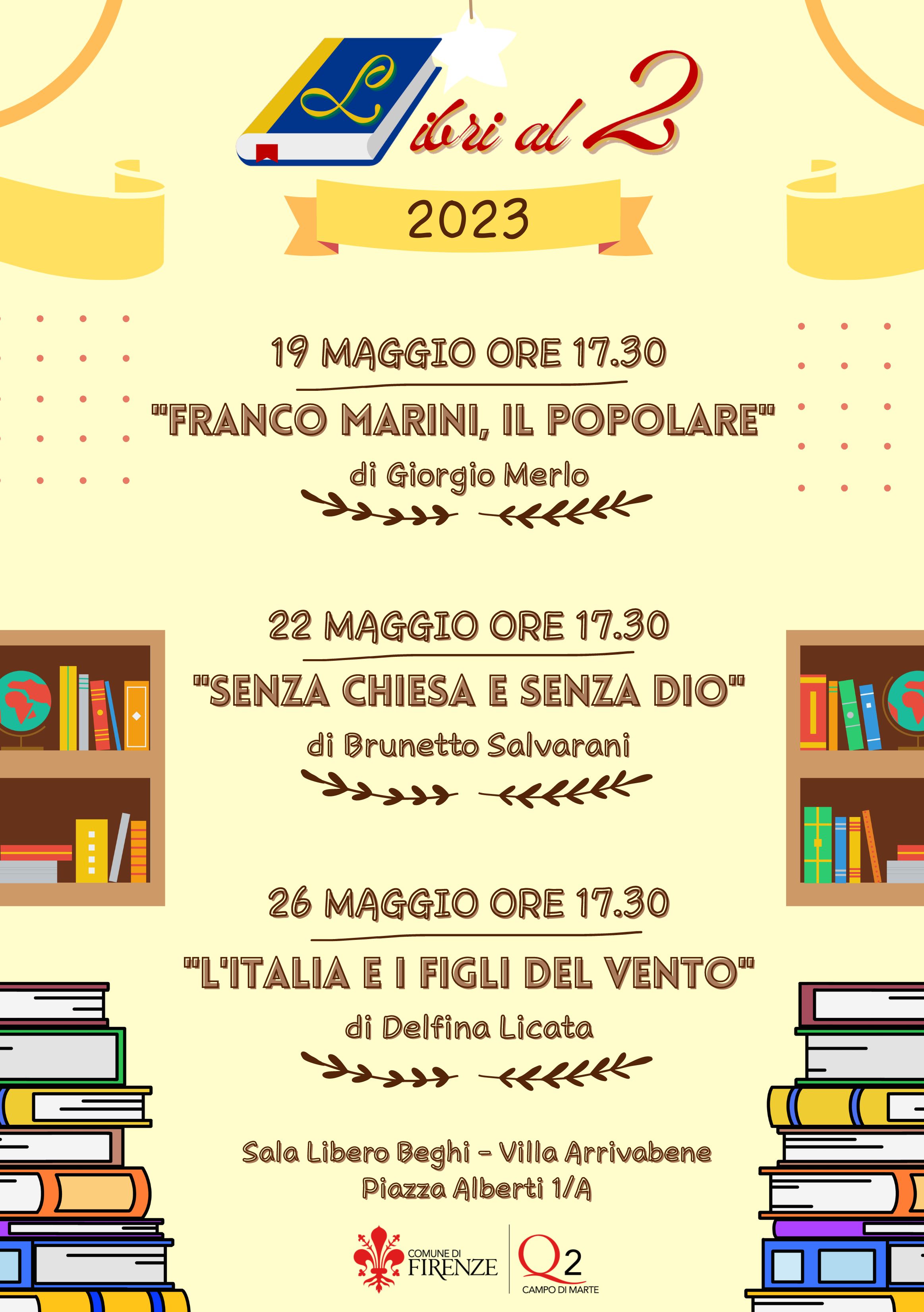 Anche la presentazione del libro del libro "L'Italia e i figli del vento", dall'autrice Delfina Licata, alla quale interverranno, con l'autrice, don Giovanni Martini, direttore dell'ufficio migranti della Diocesi di Firenze, e Maurizio Certini, del Centro Internazionale Studenti "Giorgio La Pira", prevista inizialmente per il giorno Venerdì 26 Maggio alle ore 17.30, è rinviata a data da destinarsi.