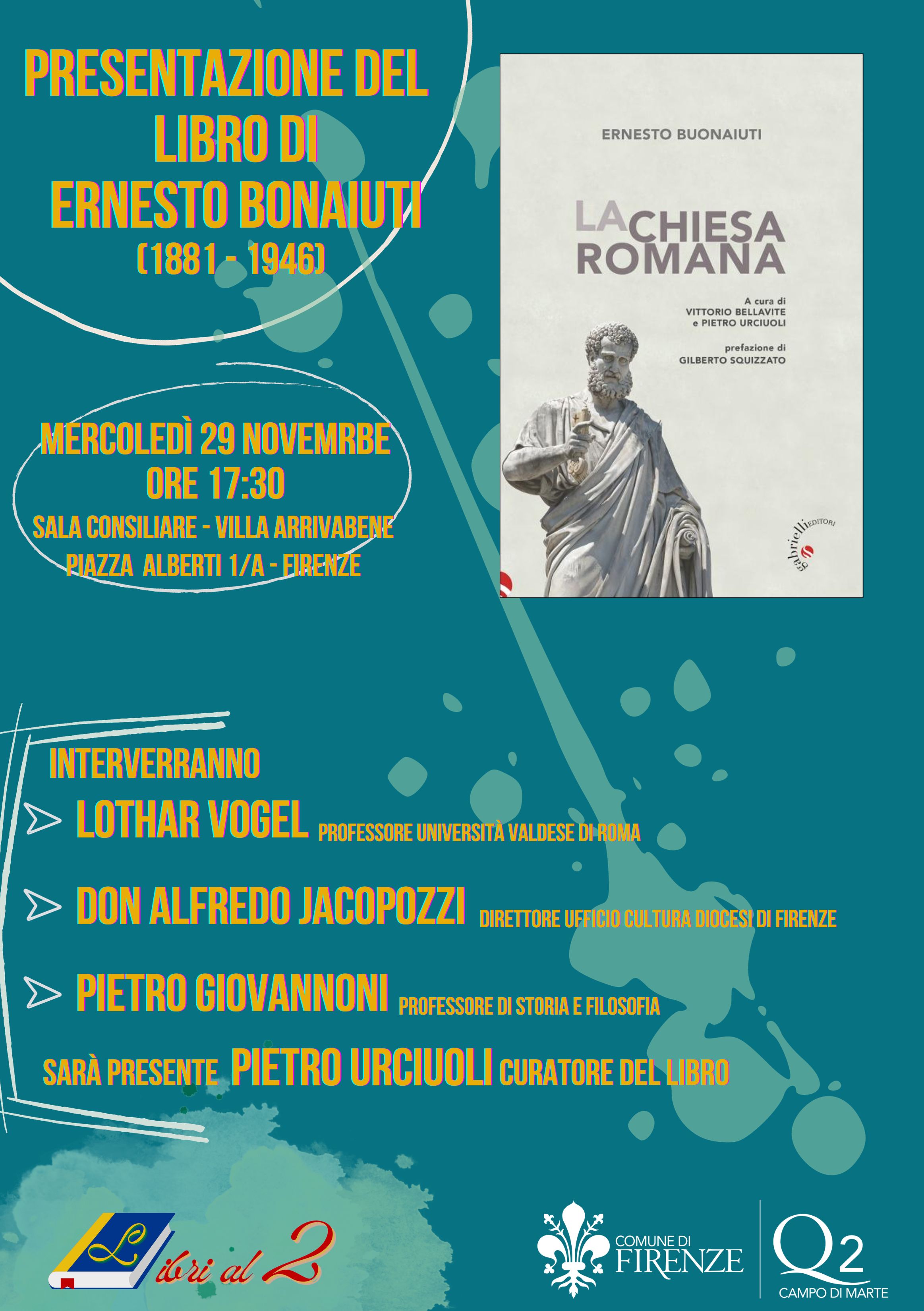 La rassegna proseguirà mercoledì 29 Novembre alle ore 17.30, presso la Sala Consiliare in Villa Arrivabene, con la presentazione del Libro "La chiesa romana", di Ernesto Buonaiuti; alla presentazione interverranno Lothar Vogel, docente dell'Università Valdese di Roma, Don Alfredo Jacopozzi, Direttore dell'Ufficio Cultura della Diocesi di Firenze, Pietro Giovannoni, docente di storia e filosofia, e Pietro Urciuoli, curatore del libro.