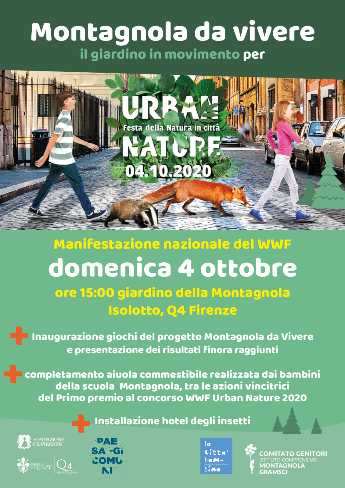 La conclusione vera e propria del progetto avverrà domenica 4 ottobre alle ore 15 alla Montagnola in via Giovanni da Montorsoli, in occasione della manifestazione nazionale del WWF Urban nature, e vedrà l'installazione di un hotel per insetti e l'inaugurazione dei giochi e della nuova aiuola commestibile realizzata dai bambini della scuola Montagnola vincitori del primo premio al concorso WWF per le scuole.