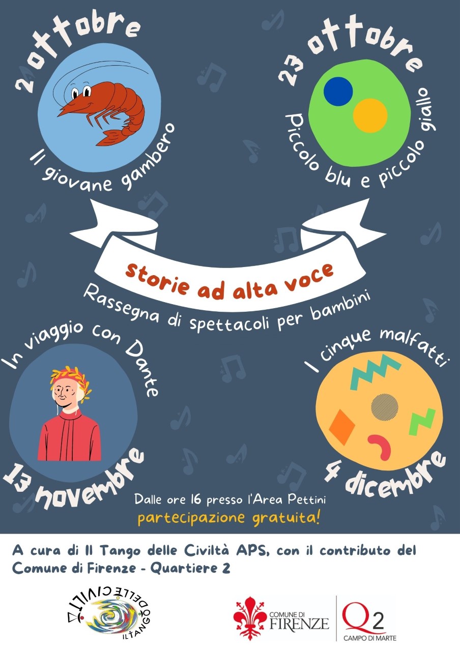 Nuova rassegna di spettacoli teatrali destinati ai più piccoli all'area Pettini Burresi, a cura dell'A.P.S. "Il Tango delle Civiltà" con la collaborazione del Quartiere 2; tutti gli eventi, con orario d'inizio alle ore 16:00, sono a partecipazione gratuita.