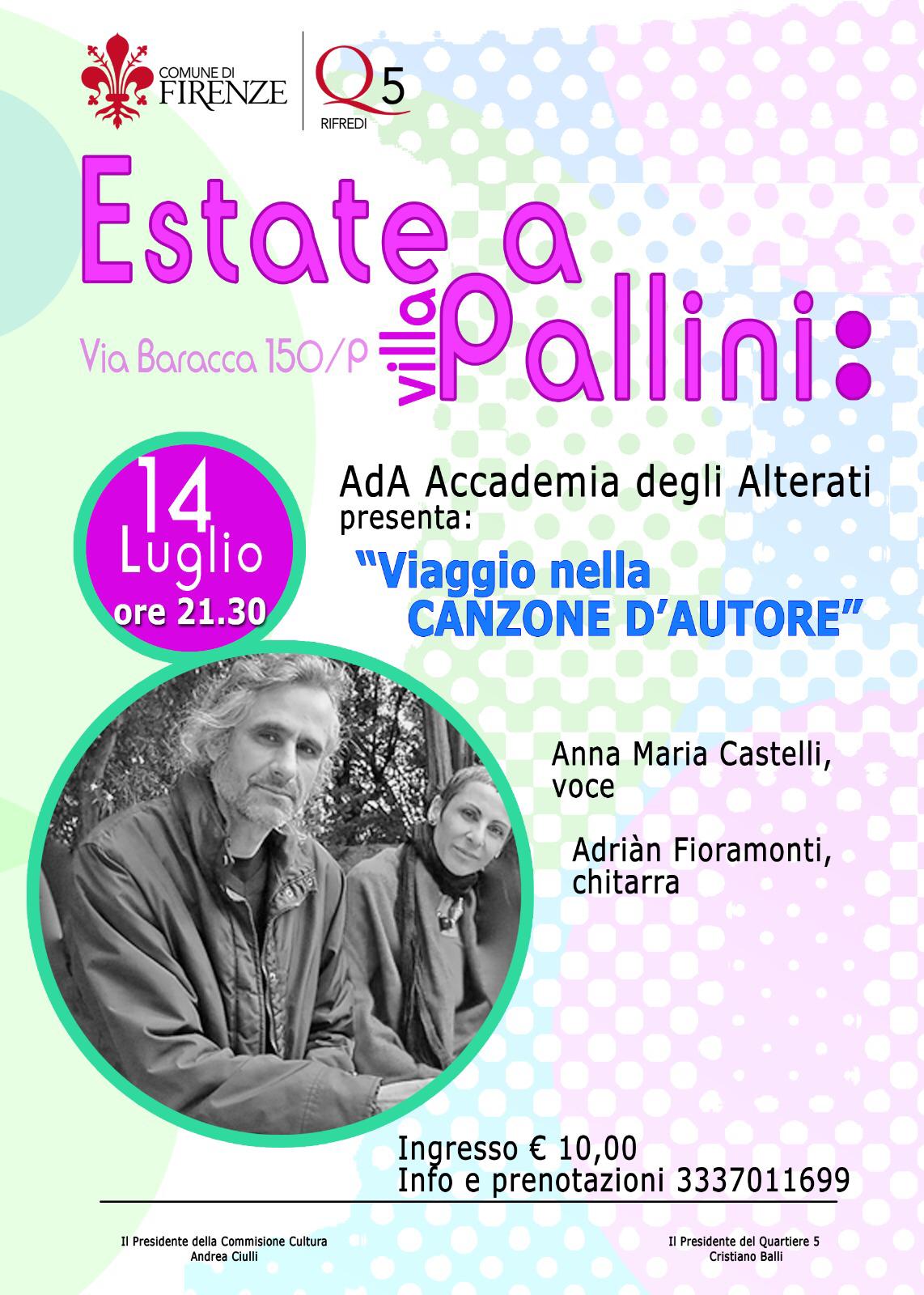 Martedì 14 luglio, alle ore 21.30, spettacolo musicale a Villa Pallini, via F. Baracca 150/p
