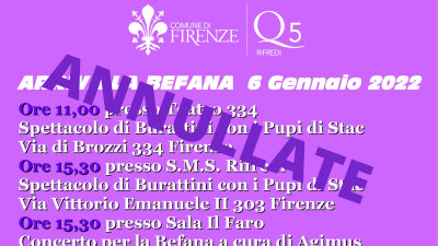 In considerazione dell’attuale situazione sanitaria, sono state annullate le tre iniziative previste per il 6 gennaio